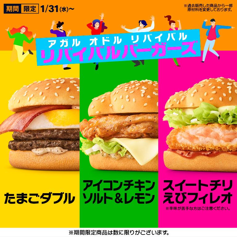 @Rendayo_191月31日(水)〜 マック「リバイバルバーガーズ」で「たまごダブル」「アイコンチキン ソルト&レモン」など人気バーガー復活!!! #マクドナルド pic.twitter.com/qZyhf9Ceuk