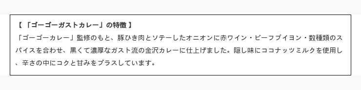 | 金沢ゴーゴーカレー、ガストに登場。ライス大盛・特盛無料! …5倍)・特盛(約2倍)に変更できる。 ■ ガスト「ゴーゴーカレー」監修「ゴーゴーガストカレー」 ・「金沢カレーガスト本気盛り」(1300円) ・「金沢カツ… (出典:グルメ Watch) |